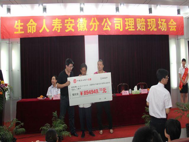 7月12日,安徽分公司工作人員經(jīng)過近兩個小時的車程,風塵仆仆地趕到六安,召開現(xiàn)場理賠會,將894949.72元理賠款送到客戶家屬手中。此次理賠案件是生命人壽安徽分公司開業(yè)以來單筆賠付金額最大的案件,也成為安徽省六安地區(qū)單筆壽險理賠最高歷史記錄。本次理賠現(xiàn)場會得到了社會各界的高度重視和關(guān)注。六安市保險行業(yè)協(xié)會、中國農(nóng)業(yè)銀行六安分行、六安電視臺等相關(guān)單位和媒體出席儀式,共同見證賠款交接。