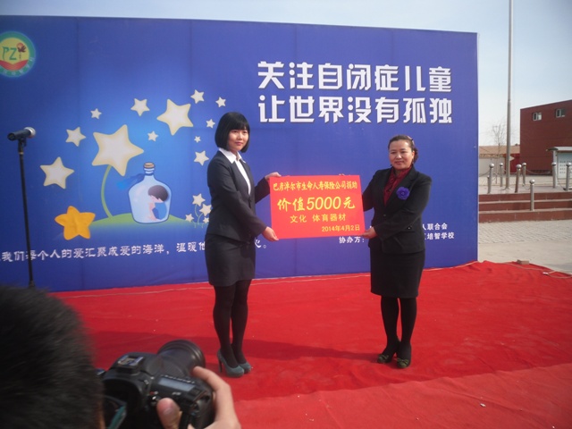 為落實(shí)2014年初總公司提出的“提升客戶服務(wù)、加大品牌宣傳、參加社會(huì)公益”活動(dòng)年精神,4月2日,生命人壽巴彥淖爾中心支公司應(yīng)巴彥淖爾市殘疾人聯(lián)合會(huì)之邀,參加在巴彥淖爾市臨河區(qū)培智學(xué)校舉辦的“關(guān)注自閉癥兒童狀讓世界沒有孤獨(dú)”主題活動(dòng),并為本次活動(dòng)共捐贈(zèng)500多件各類衣物、書籍、文具、益智類、運(yùn)動(dòng)類等物品。