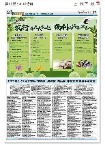 3·15期間,河北分公司在營業(yè)大廳、走廊放置展架、懸掛條幅、張貼海報(bào),并在客服大廳放置三折頁宣傳資料,同時(shí)借助傳統(tǒng)媒體、互聯(lián)網(wǎng)媒體、公司微信公眾號、抖音等渠道開展保險(xiǎn)教育宣傳活動。3·15當(dāng)天,河北分公司榮登《河北經(jīng)濟(jì)日報(bào)》“重質(zhì)量、講誠信、創(chuàng)品牌”入圍企業(yè)名單,與眾多企業(yè)一起發(fā)布質(zhì)量誠信承諾宣言,進(jìn)一步打造企業(yè)良好品牌形象。